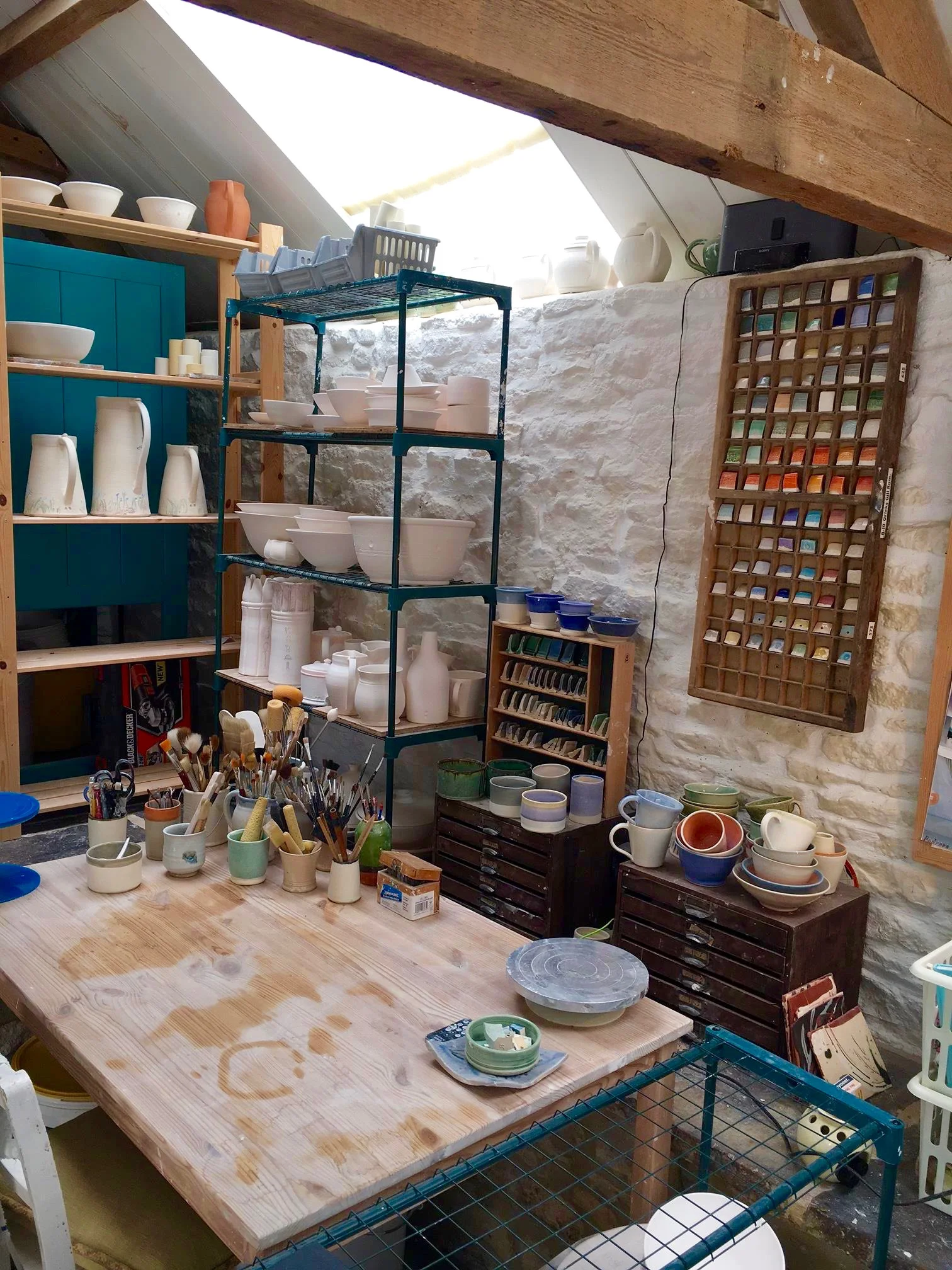 My studio is in a converted stables in a field in Gloucestershire. It is light, calm, and in harmony with the landscape. I work to create objects that respond to and reflect these elements.